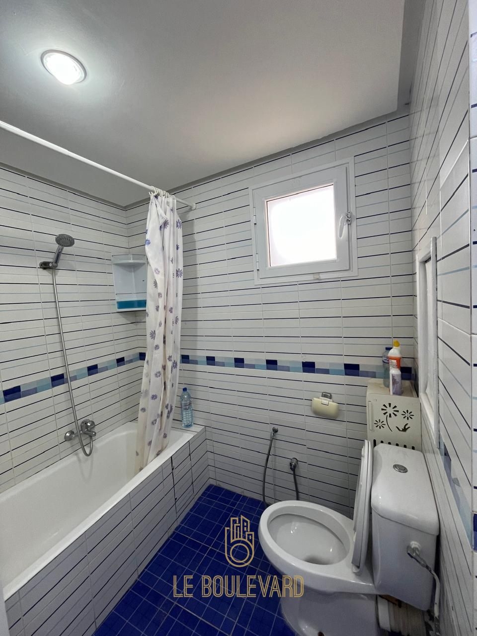 Il se compose d’un salon spacieux et lumineux avec balcon vue sur mer, une cuisine bien équipée, 3 chambres à coucher avec dressing, salle de bain et salle d’eau.