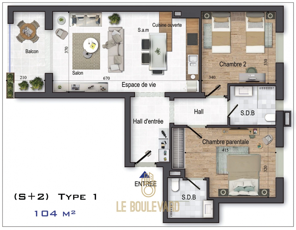 Il se compose d'un lumineux et spacieux salon avec terrasse, une suite parentale avec salle d’eau et dressing, une chambre à coucher avec dressing, une cuisine bien équipée (plaque, hotte…) et salle d'eau.