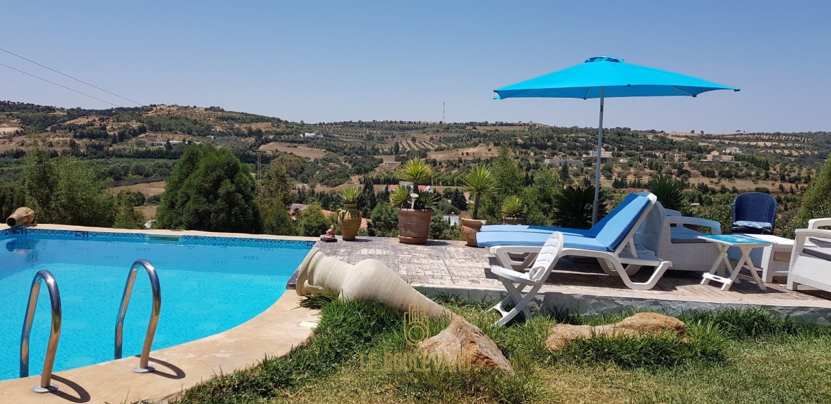 Une villa de compagne S+3 avec piscine, située au cœur de la montagne de la région de Hammamet, bir bouragba, destinée au l’amoureux de la nature.
