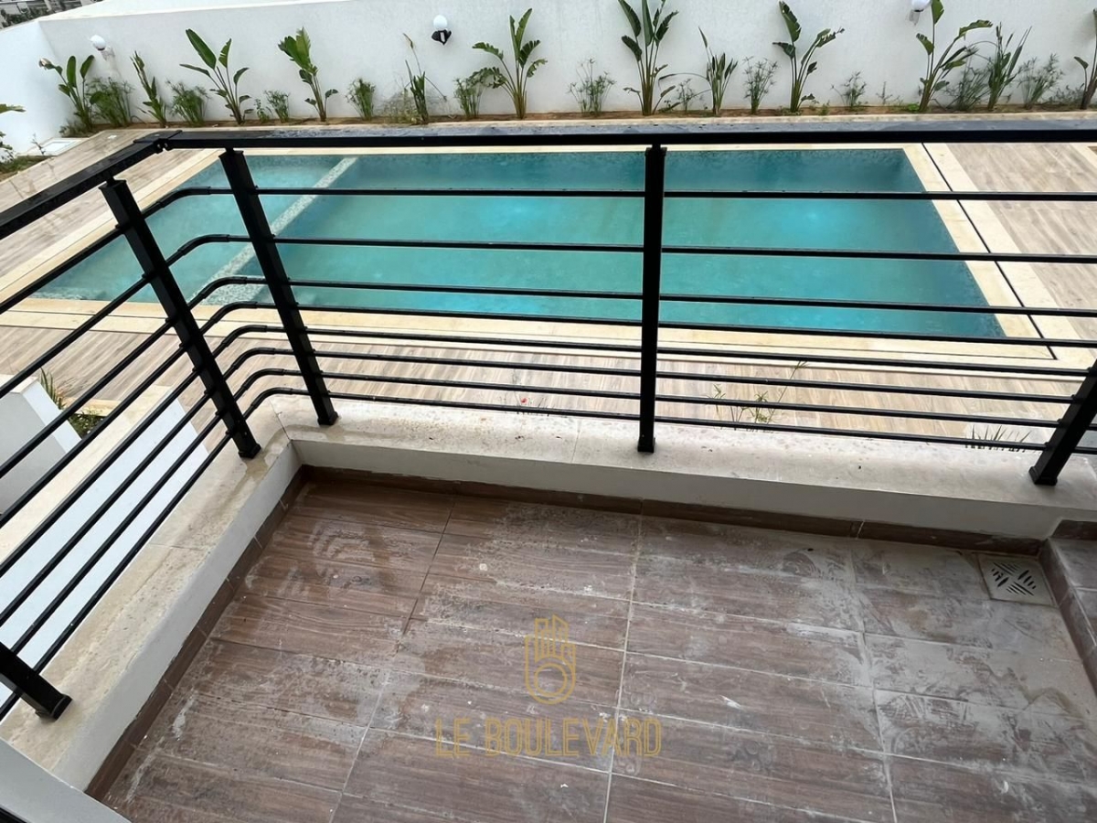 Il se compose d'un salon avec balcon vue sur piscine, une chambre à coucher avec dressing, placard, une cuisine bien équipée (plaque, hotte, four…) et salle d'eau avec cabine de douche.