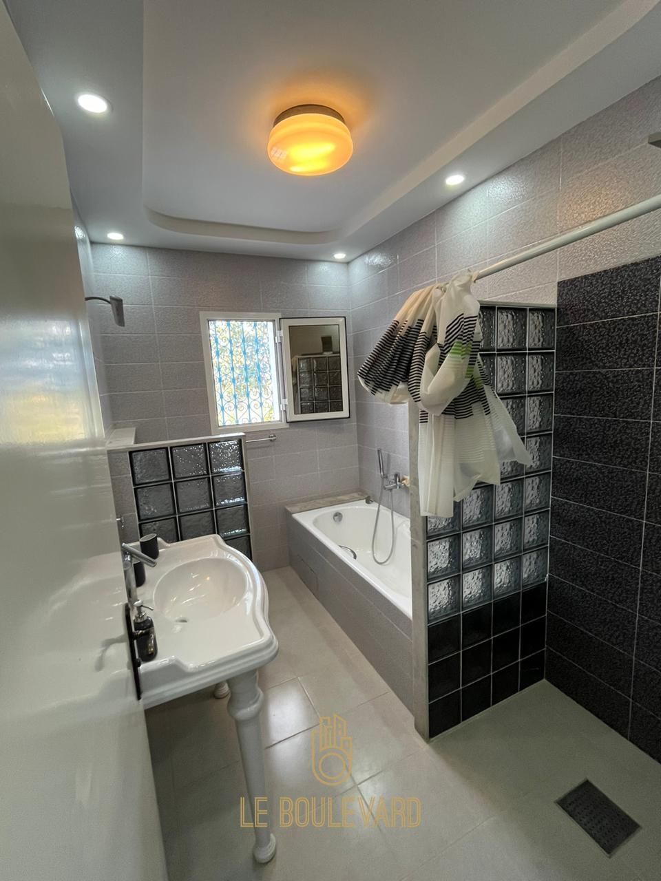 La villa se compose d’un grand salon avec salle à manger, séjour, 3 chambres à coucher, salle d’eau, Salle de bain et une cuisine bien équipée (plaque, hotte, cafetière, machine à laver, réfrigérateur …)