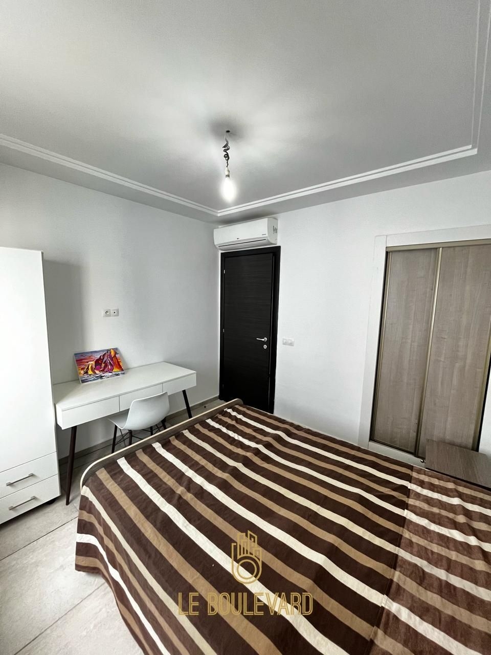 Il se compose d'un salon avec balcon, une cuisine bien équipée (plaque, hotte, four…), une chambre à coucher avec dressing et salle d’eau avec cabine de douche.